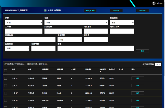 管理者可利用網頁進入設備維護系統進行相關設置,讓保養人依據設定進行保養