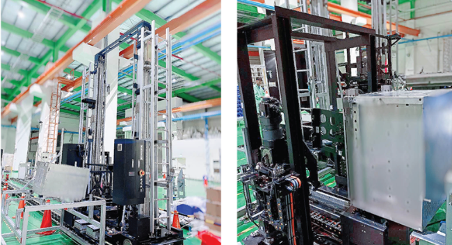 盟立magazine stocker具備多項創新特色。Load port采用多軸設計,使之不只具備移載功能,還能達到升降、旋轉功能,穩定地將滿載的magazine從直立擺放旋轉至斜躺角度再行移載,反向動作亦同。并stocker內部,crane在每分鐘以180m/min的走行速度,穩定的走行并高效率地在儲位格之間存放Magazine,移載過程中,每一環節皆能維持住magazine斜躺角度的精密機械設計更是獲得客戶的高度肯定。