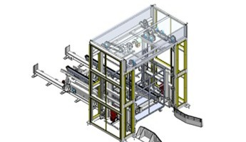 4、AGV頂升(sheng)小桌板駛入結合機,叉臂插(cha)臂放下貨物,AGV退出(chu)。
