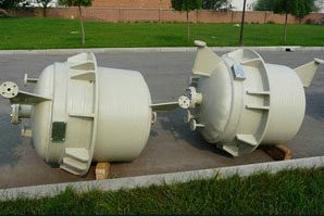 二種:Oblation纏繞工藝方法,利用玻璃鋼材料,具有一定的柔順性質(zhì),在生產(chǎn)車間里先纏繞成PPH聚丙烯異型設(shè)備殼體以后,在橫向上施加以一定的壓力裝上卡車運(yùn)輸?shù)绞褂霉さ?,然后再恢?fù)到原來(lái)的圓柱外形,然后再裝配成所設(shè)計(jì)的特大型玻璃鋼P(yáng)PH聚丙烯異型設(shè)備。